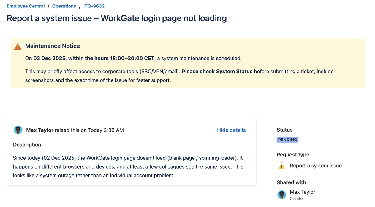 Editable requests, clear steps and timely banners keep customers informed, and move tickets faster through the lifecycle.